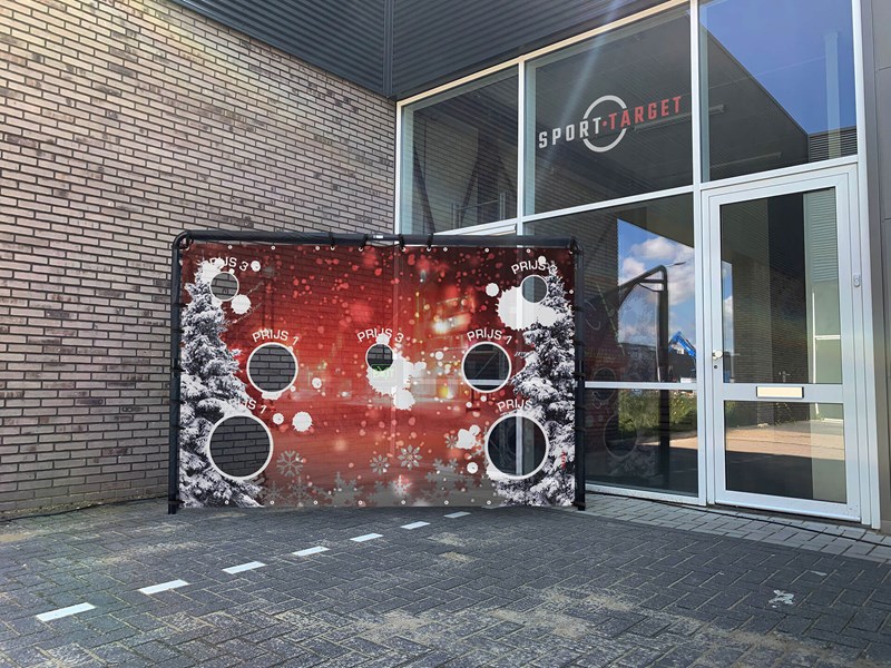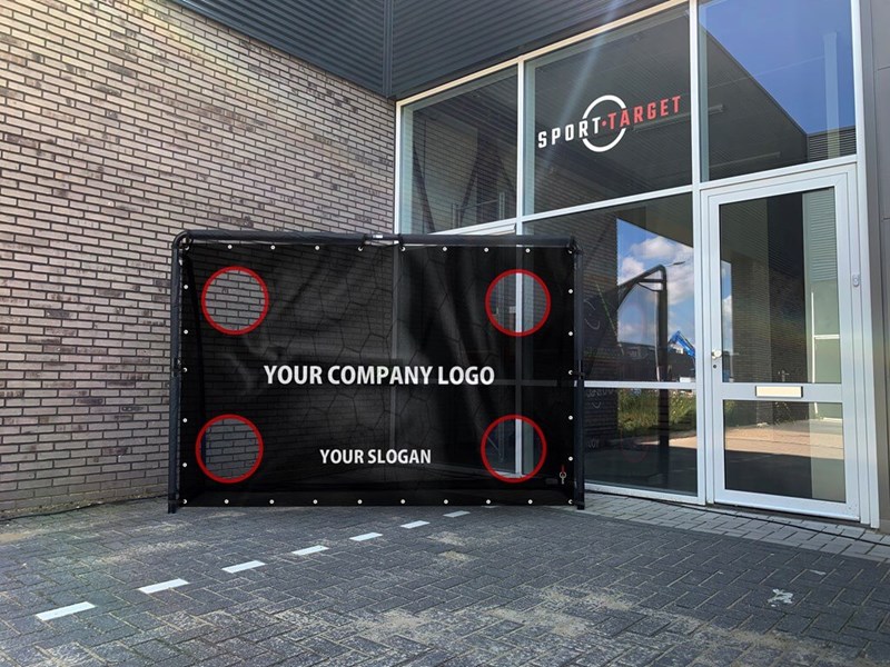 We ontwerpen voor u uw eigen Promotie gatendoek welke u in het meegeleverd goaltje in het totaalpakket kunt inhangen! Bent u bang voor een kapotte etalage ruit, biedt een softbal de uitkomst. Cadeaschieten, Prijzenschieten of kortingschieten alles is mogelijk!