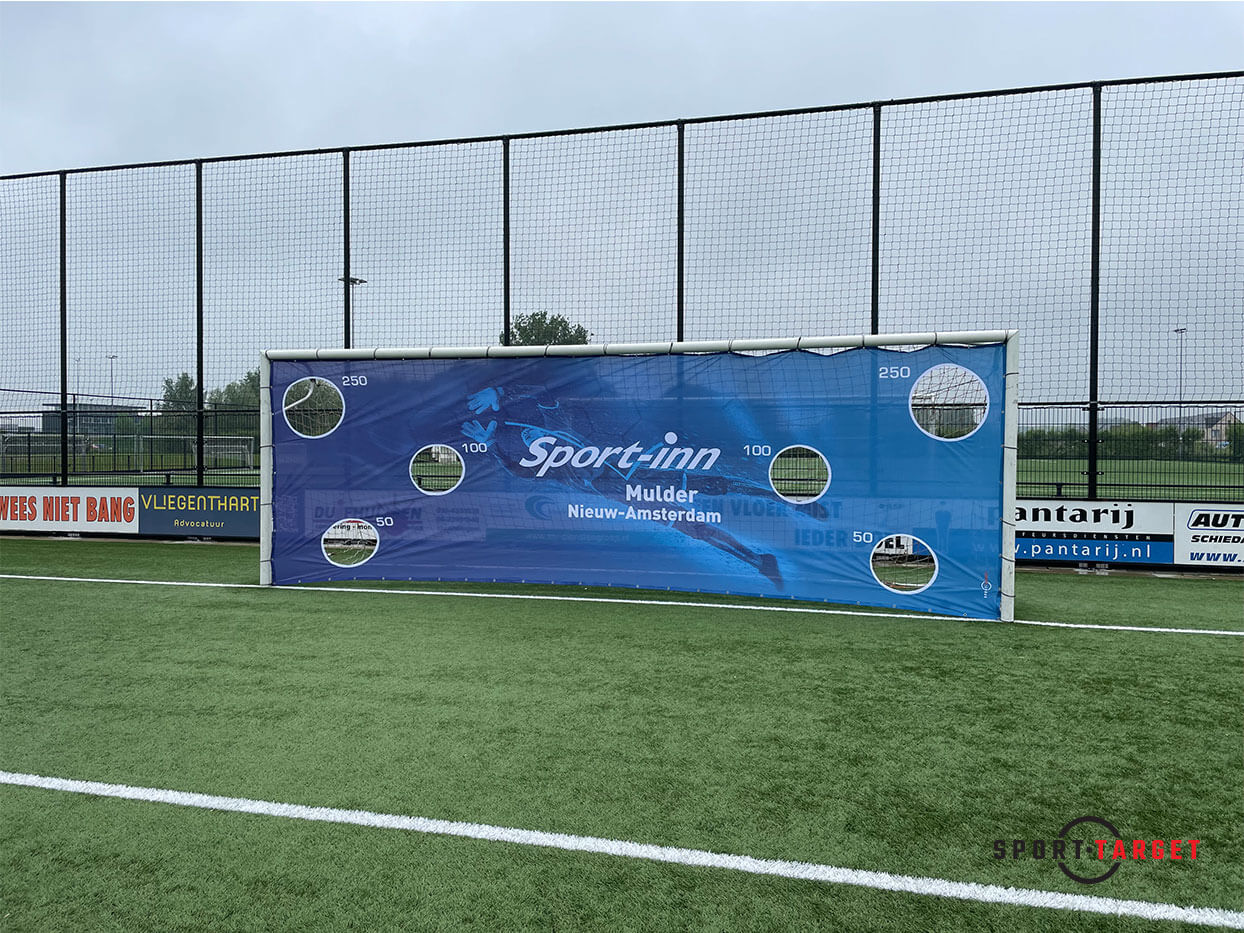 Sport Inn heeft nu een custom ontwerp Voetbal Target met de gaten en puntentelling naar wens om leuk op te kunnen trainen. Een fantastische reclame voor Sport Inn sportspeciaalzaak.