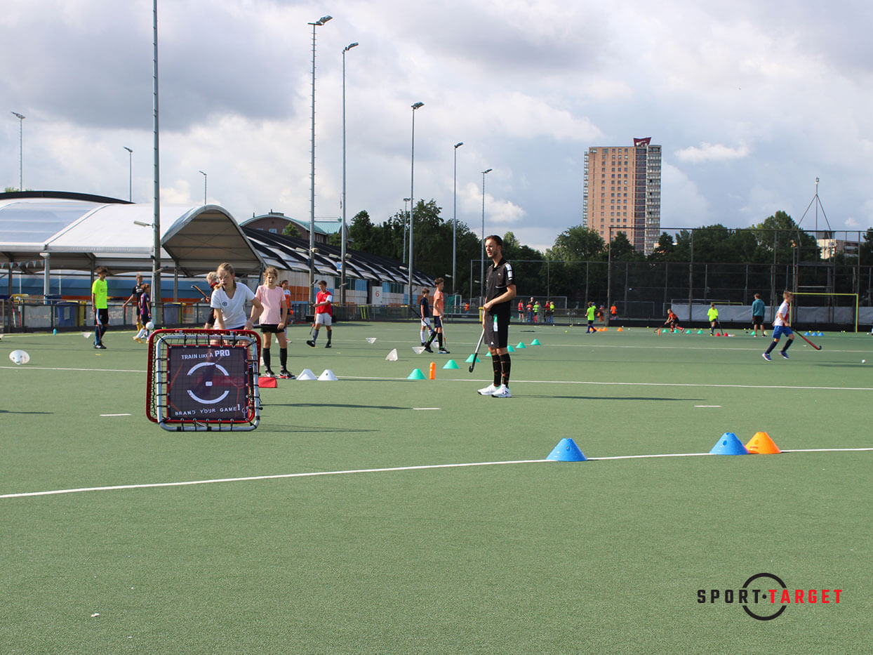 De Hockey rebounder van Sporttarget pronkt met het eigen ontwerp als een unieke promotie op het veld waar u aan het trainen bent! De perfecte sportmarketing tool.