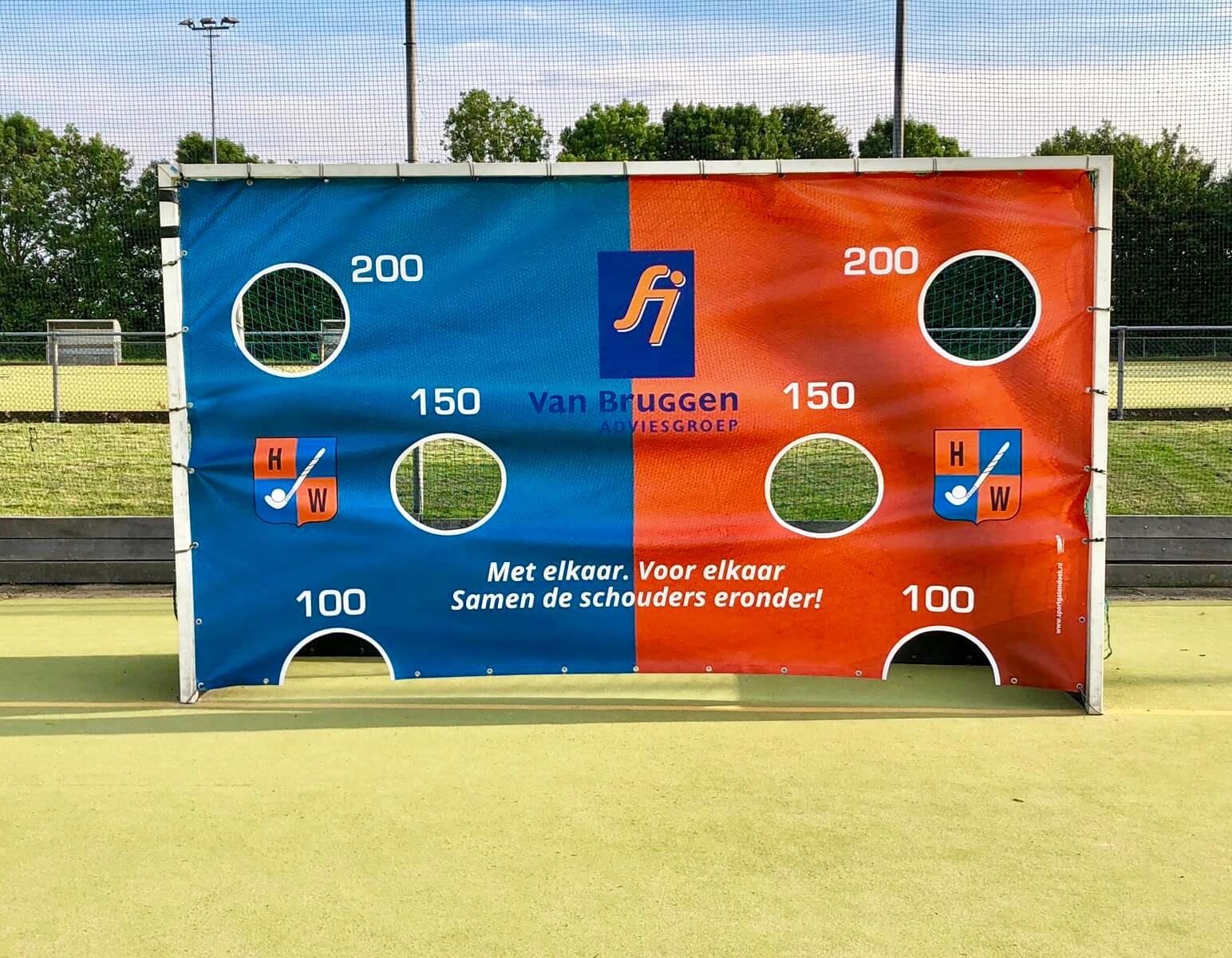 De sportgatendoeken van Hockeyclub HCHW werden door Sportspromo gerealiseerd in opdracht van sponsor van Bruggen Adviesgroep. De Hockeytargets worden ingezet voor haar club activiteiten en als sportieve promotie. Een leuk spel element met uiteraard een extra leuke promotie voor de vereniging.