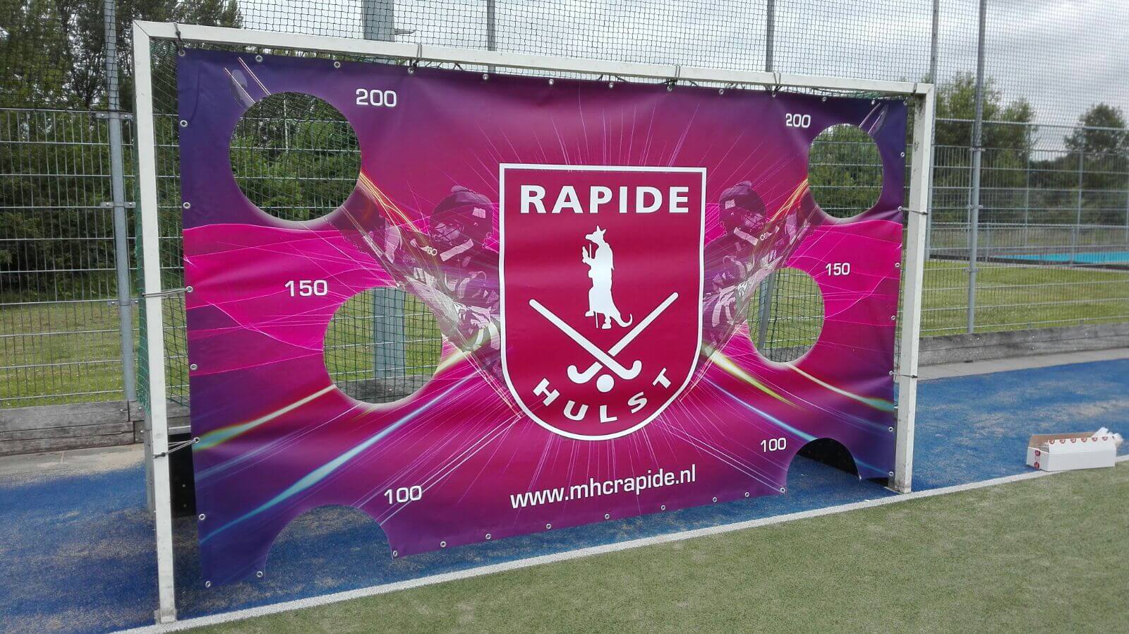 Het sportgatendoek van MHC Rapide werd door Sporttarget gerealiseerd in opdracht van de vereniging. De Hockeytarget worden ingezet voor activiteiten en als sportieve promotie. Een leuk spel element met uiteraard een extra leuke promotie voor MHC Rapide.